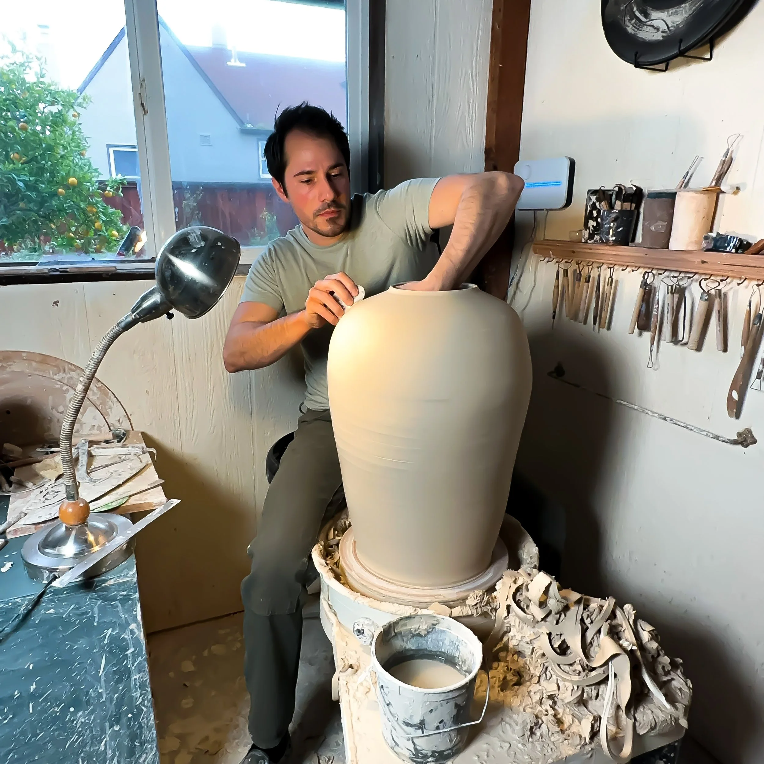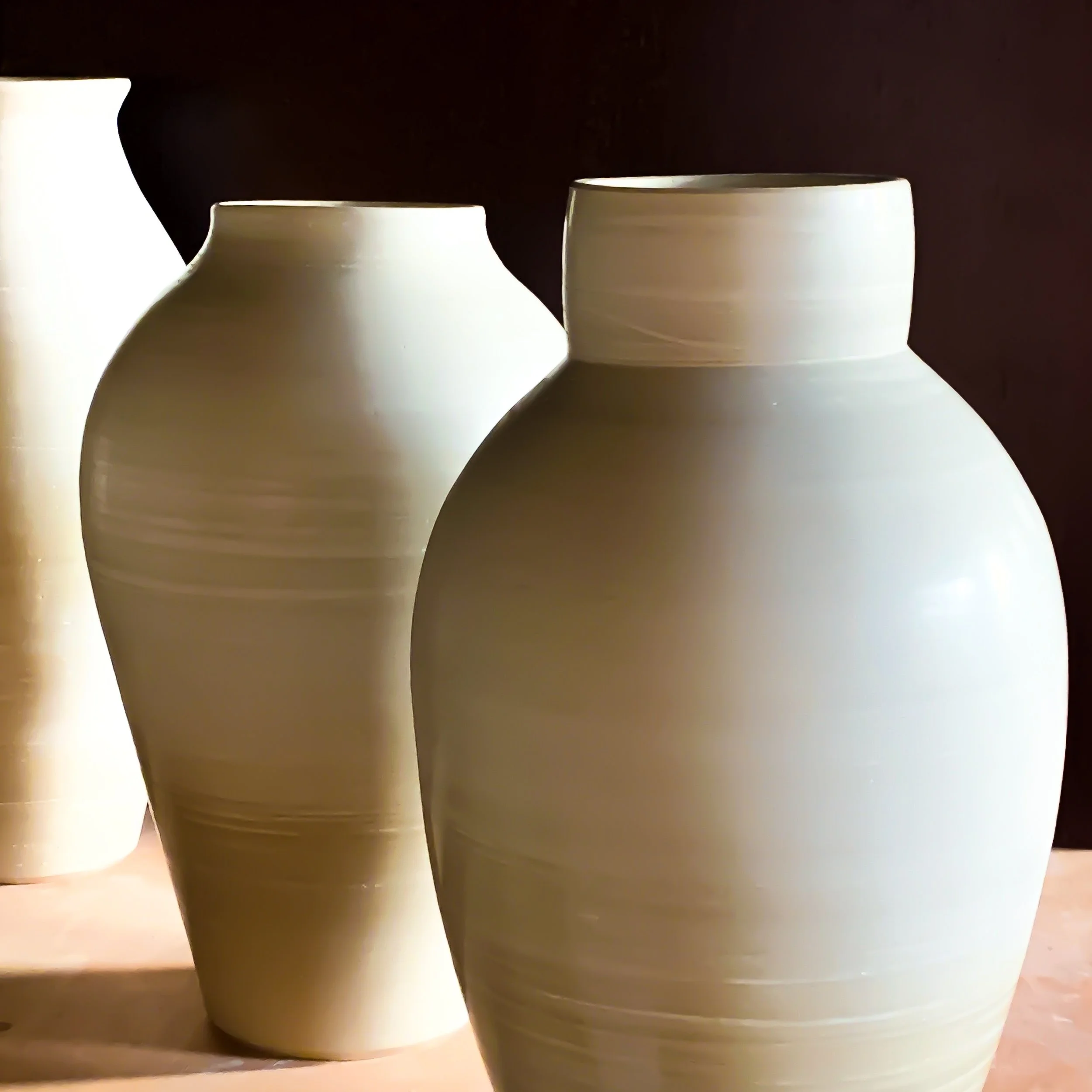 My decorative work ranges widely in form, color, and texture, from small vases to large statement pieces. I often follow the flow of the clay, letting my hands shape whatever form feels right in the moment. Larger pieces hold a special place in my heart as they challenge me to push the limits of both my craft and the size of my kiln.