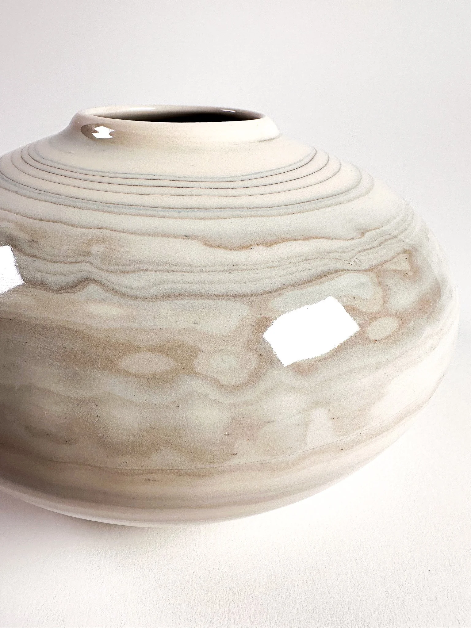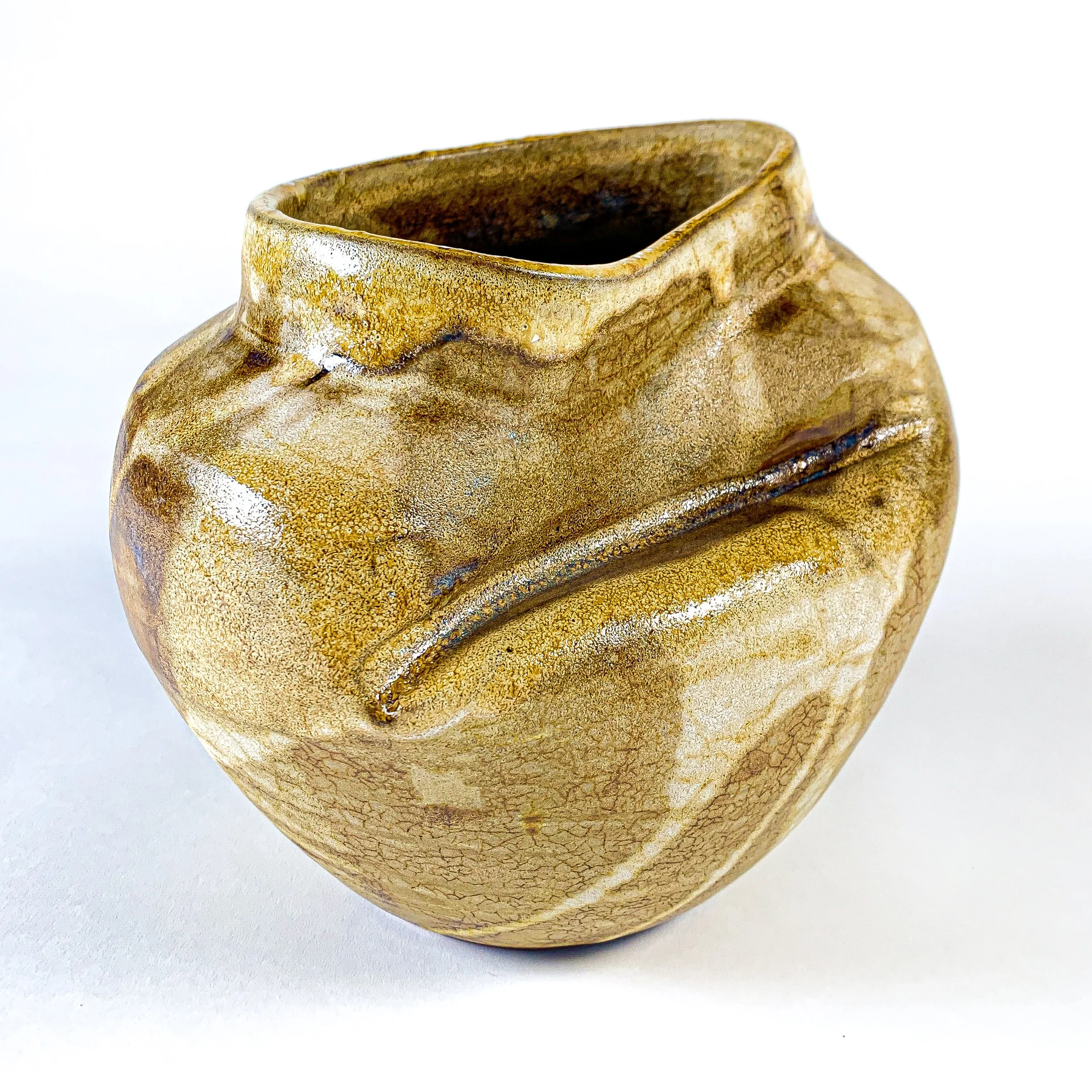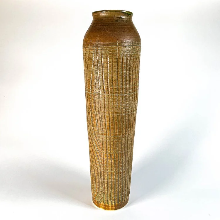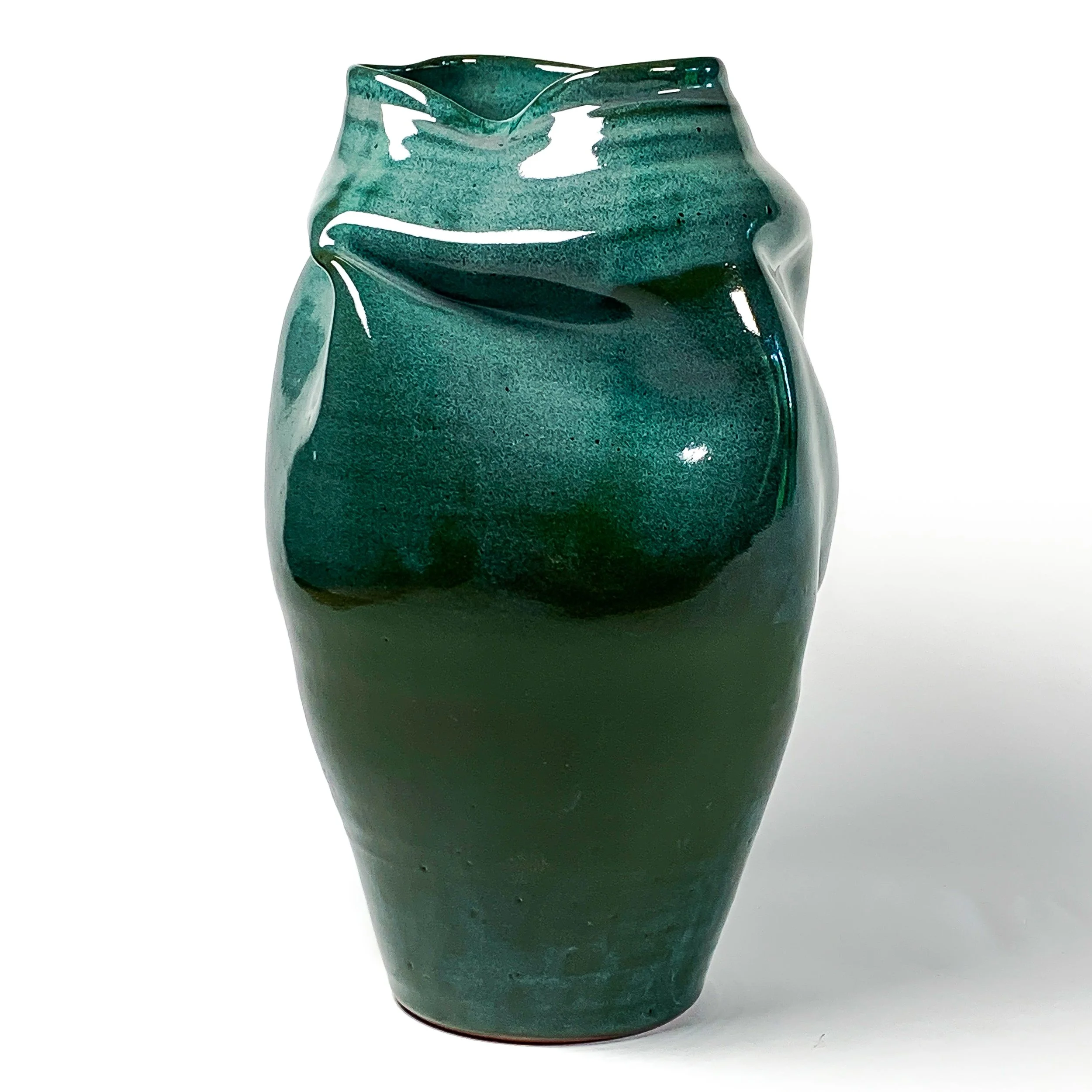 These vases begin as symmetrical wheel-thrown pieces and, once set just enough, I alter them to create an intentional asymmetry. I then deconstruct the original shape and rebuild each piece from the bottom up, resulting in a form with organic, sculptural balance.