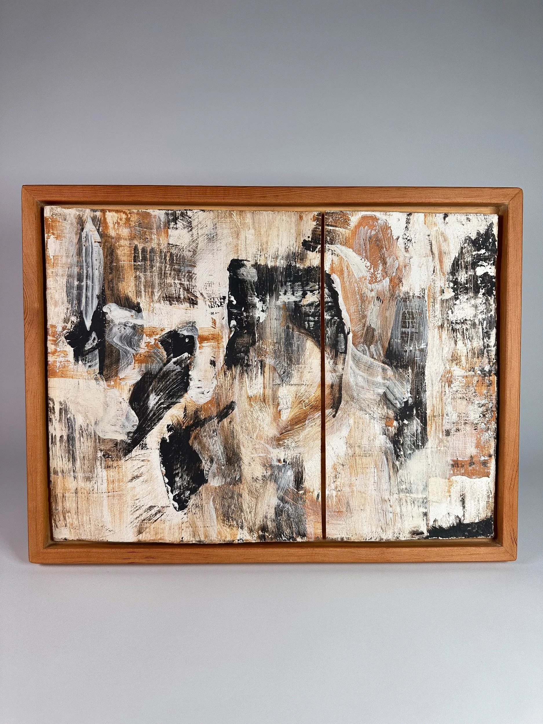 These Ceramic Paintings are a style I’ve created that combines my favorite parts of painting and pottery together. The process is entirely clay-based from beginning to end. Upon completion I mount and custom frame each piece on locally sourced wood.